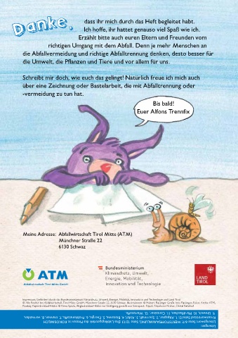 © Alle Rechte bei Abfallwirtschaft Tirol Mitte GmbH, Münchner Straße 22, 6130 Schwaz. Illustrationen: © Hubert Flattinger Grafik: Ines Flattinger, Fotos: Archiv ATM,